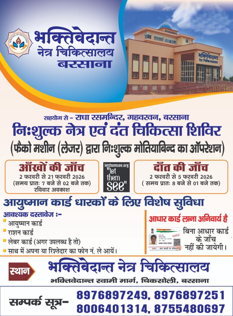 We appeal to your compassion and generosity to sponsor cataract surgeries for the Brajwasi . Many in this region suffer from cataracts, robbing them of their ability to see the beauty that surrounds them – the smiles of loved ones, the vibrant colors of nature, and the simple joys of life. Your support will create a ripple effect, transforming countless lives. By restoring eyesight, you empower these individuals to reclaim their independence, rejoin the workforce, and lead fulfilling lives once again. Through this initiative, we strive to eradicate needless blindness and usher in a brighter future for Brajwasi. Each contribution, big or small, brings us closer to our goal of restoring sight and spreading hope. Join us in this noble cause! Your kindness is a beacon of light, guiding us towards a world where everyone can cherish the gift of sight. Together, we can make a profound difference and illuminate the lives of the Brajwasi community. Contact us now to sponsor bulk cataract surgeries. Let's shine a light of hope and compassion together! 🙏